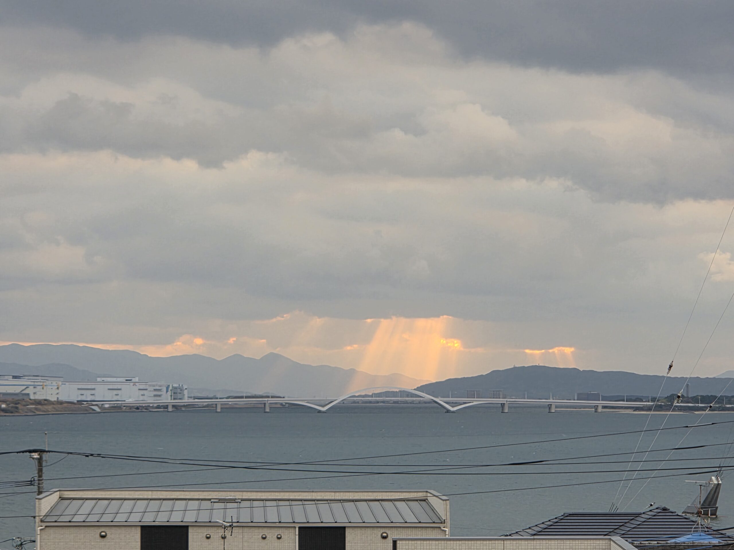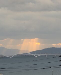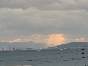 今日は夕日じゃなく、「天使のはしご」が見れたんだニャッ!