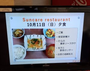 10月からはモニターに盛り付け後のお食事を映すように致しました。