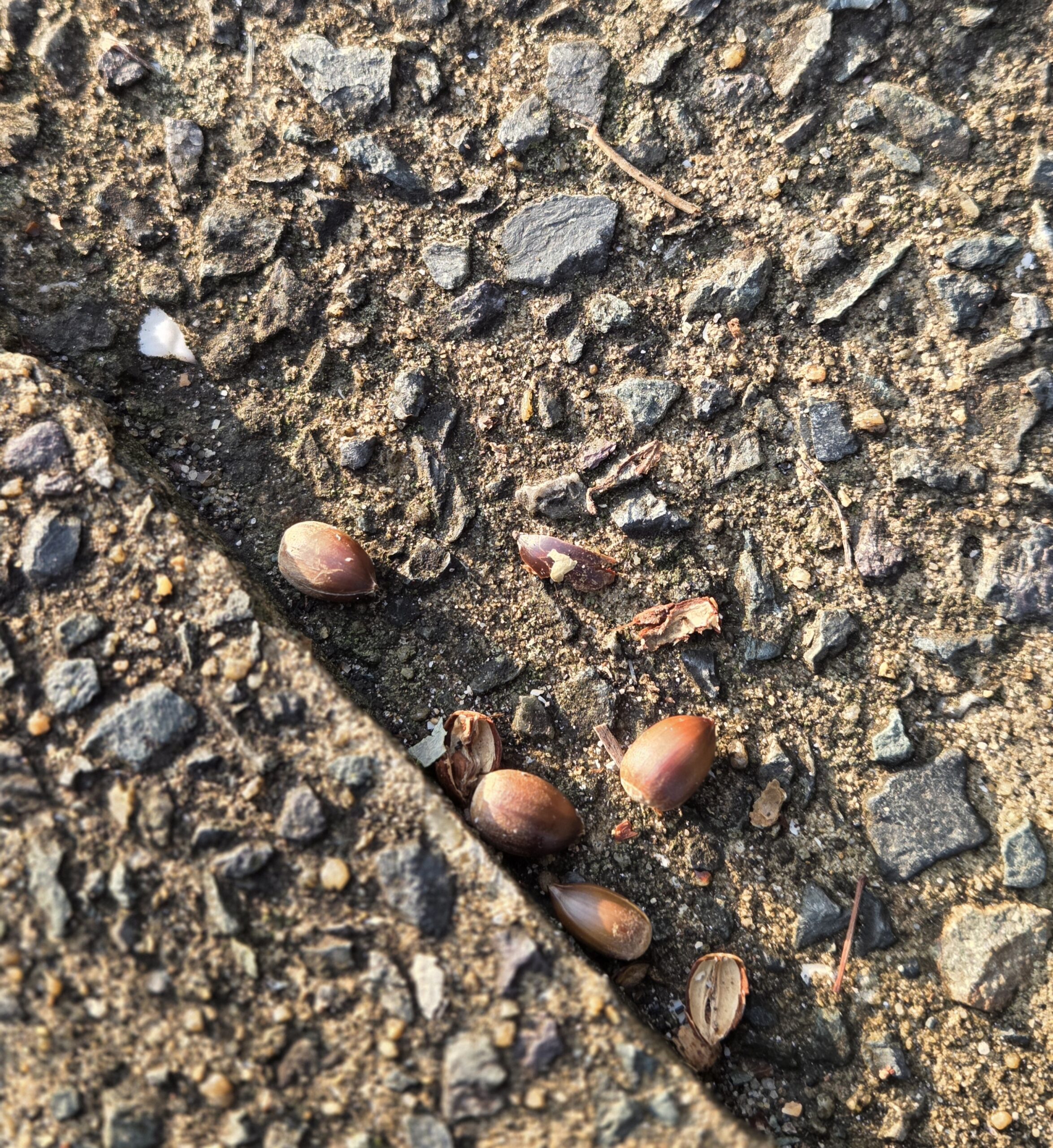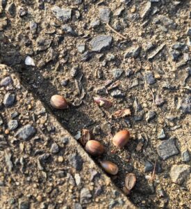 紅葉の他にも椎の木などがあり、どんぐりがいたるところに転がっています。