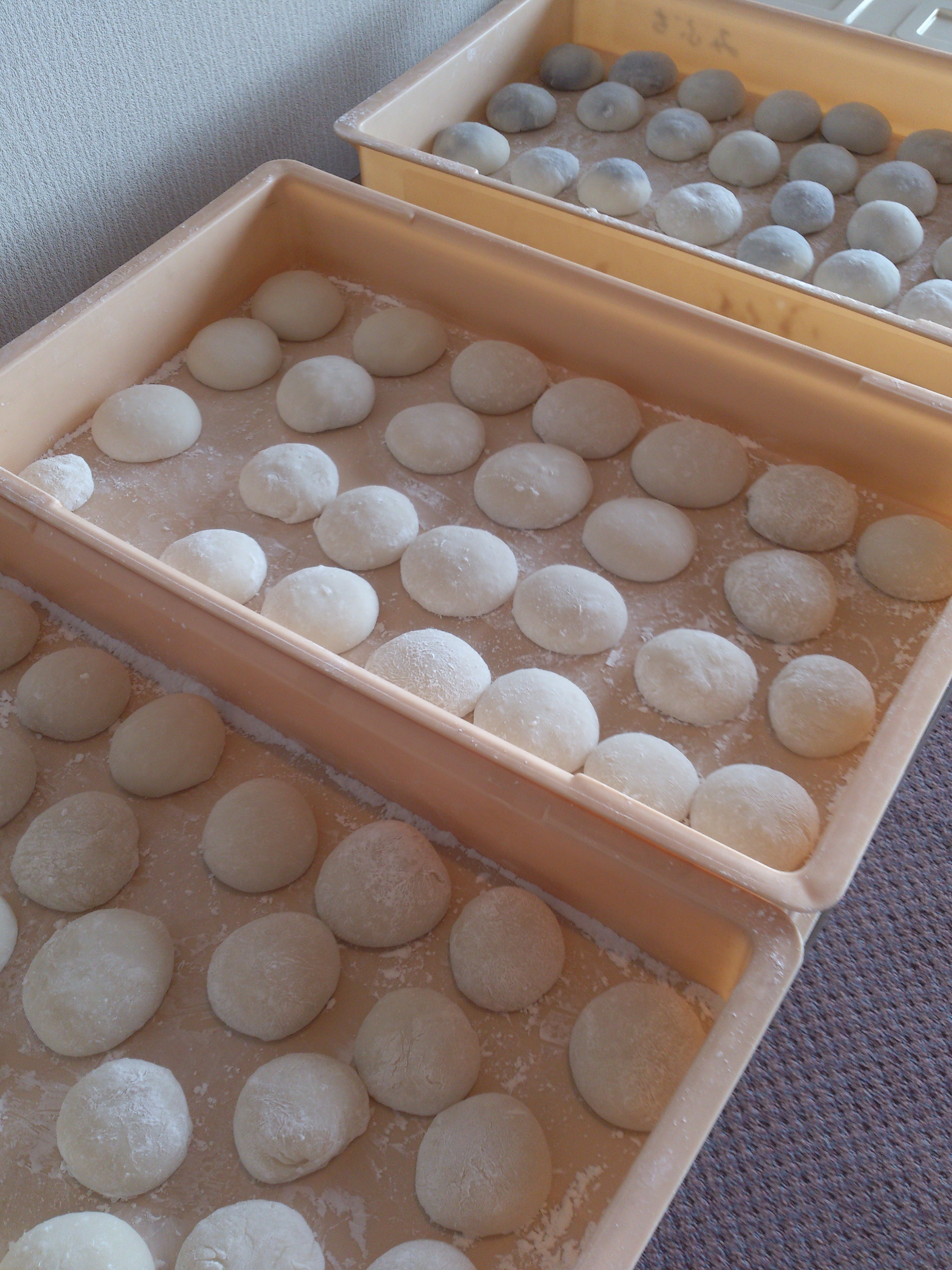 餅をちぎり、丸める作業はご入居者様にご協力をいただきました。