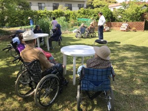 皆様こんにちは。 ここ最近の福岡市は安定した天候に恵まれ、春の温もりを感じられる日々が続いています。 ご入居者様方も歩いて外出される方やご友人のお迎えでお車でお出かけになられたりと、春の陽気に誘われ外出を楽しまれています。 また、この時期になりますとご入居者様が外泊される機会も多くなり、長期外泊で故郷に帰られる方やヨーロッパ方面へのクルーズ旅行にお出かけされる方もいらっしゃいます。 当ホームでは自立の方から要介護の方までご入居されていらっしゃいますが、先日敷地内にあります芝生広場にてご入居者様とともに野外レクリエーションを実施致しました。 あまり外出ができないご入居者様も「外の空気はおいしい」「日光浴ができて良かった」など思い思いに春を感じられていらっしゃいました。