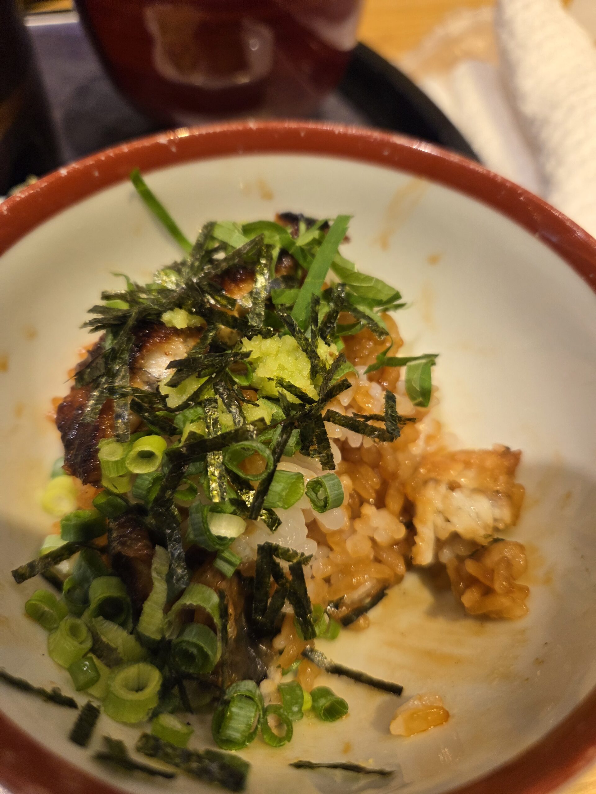 食べきれるか不安でしたが、最初はそのまま、二杯目は薬味を乗せて、最後は出汁をかけて出汁茶漬けにして…